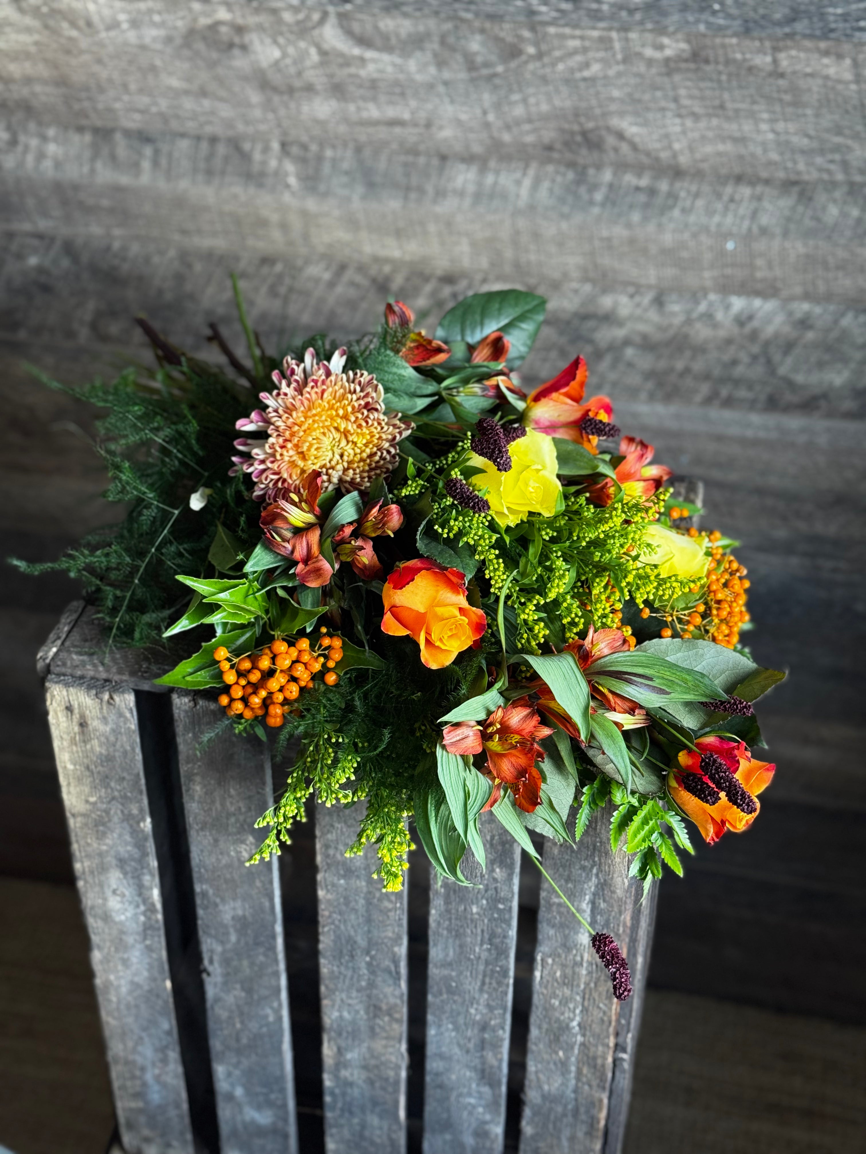 Utbudet av blommor styrs av säsong, därför kan blomsterarrangemangen skifta en aning i utseende.